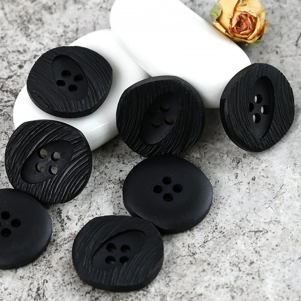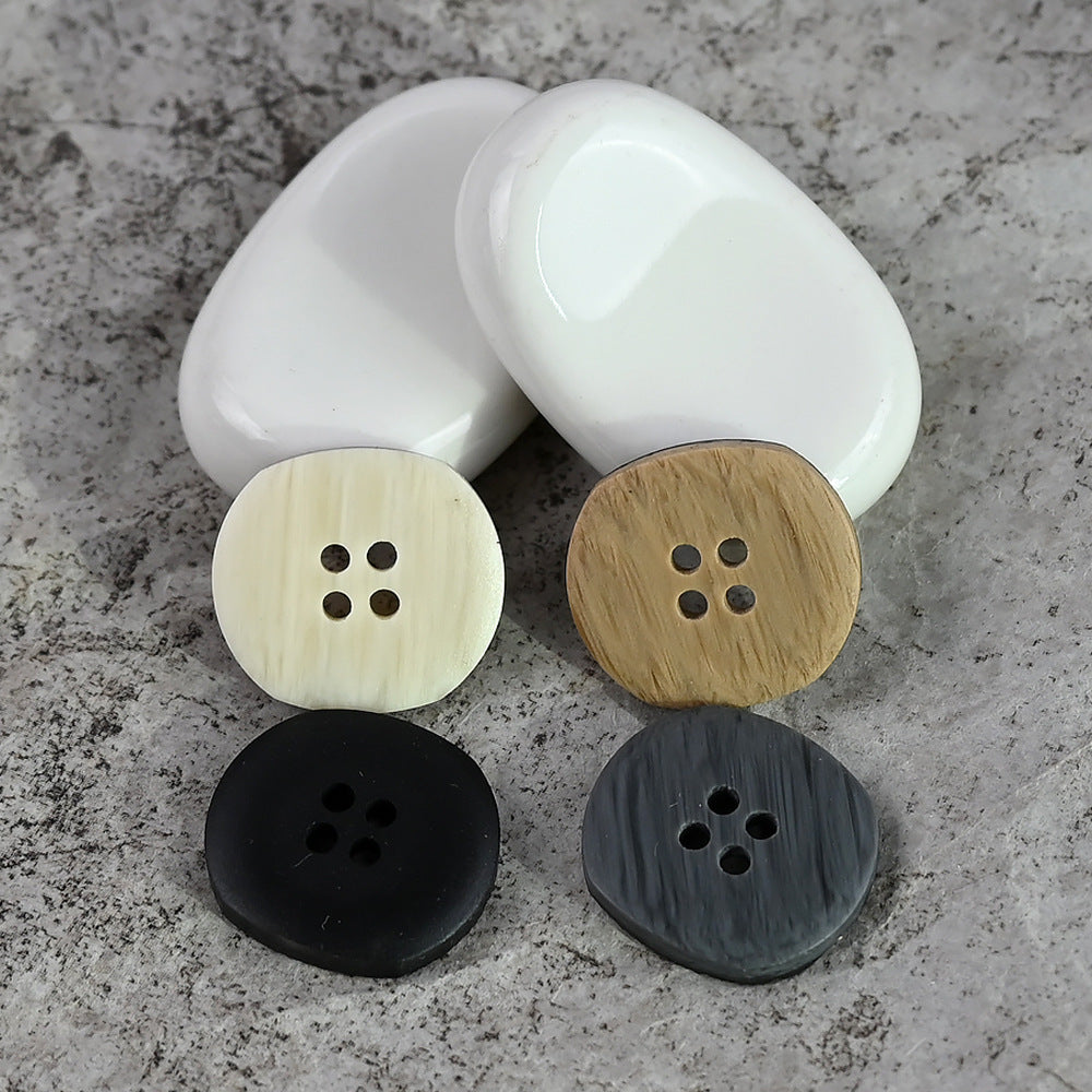 18-28mm Oregelbundet Skurna Fyrkantiga Runda 4 Hål Imitation Trä Ådring Vintage Sliten Harpiks Knappar för Ulltröjor och Stickade Koftor 20st