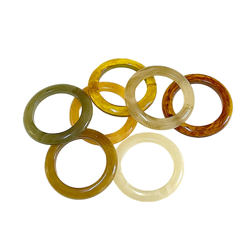 Dessa knappar i resin med en inre diameter från 25 till 50 mm är ett trendigt dekorativt val. Med en design av blomring i stavform, tillför de en touch av elegans och charm. Idealiska för att dekorera kappor, tröjor, hattar, skor och väskor. Materialet i resin är hållbart och finns i olika färger och ytor. De kan förvandla en enkel artikel till ett stiligt statement. Oavsett om du siktar på en chic, sofistikerad eller funky look, ger dessa knappar den perfekta avslutande touchen, vilket förbättrar den övergripande estetiken och får dina accessoarer och kläder att sticka ut.