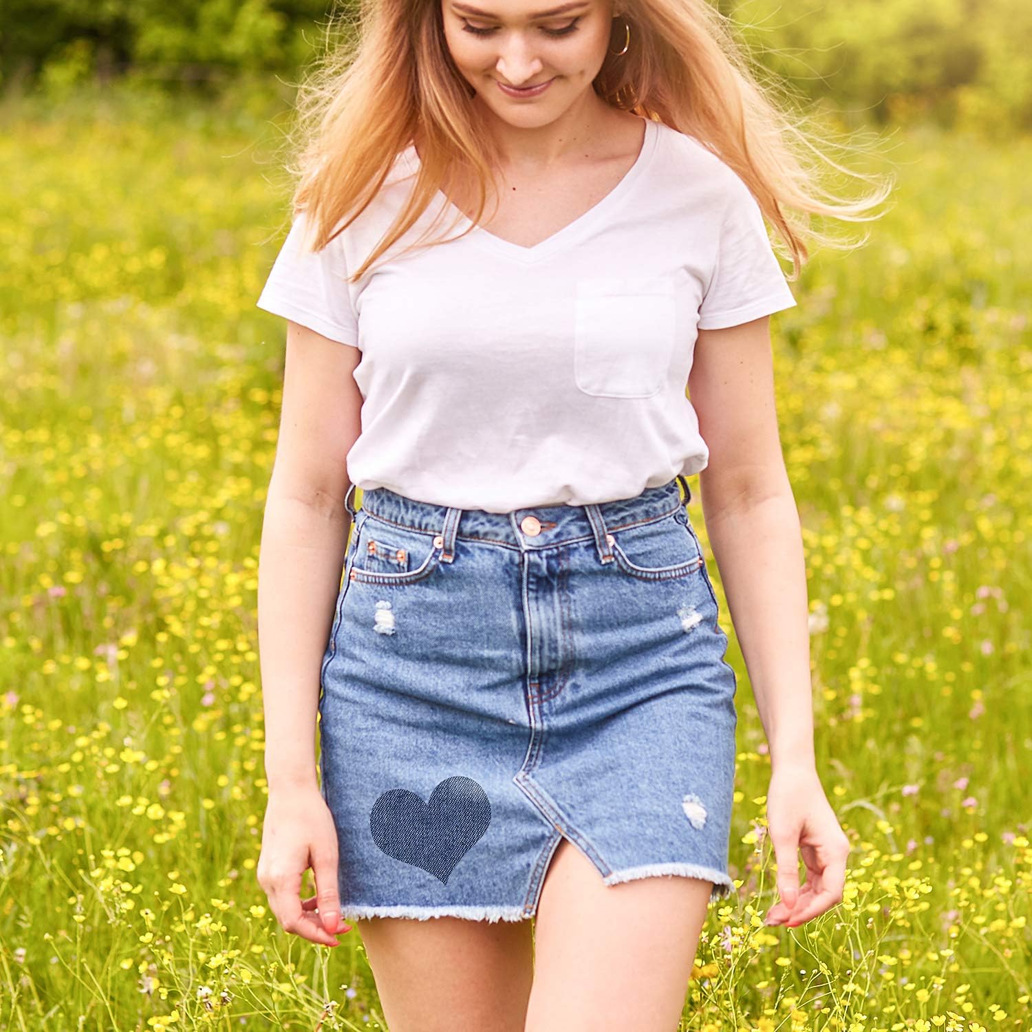 Reparation och dekoration: järn på denimlappar förlänger livet på dina favoritkläder eller ger gamla kläder ett nytt liv genom att dekorera dem; Det tar bara några minuter att reparera eller dekorera dina kläder.