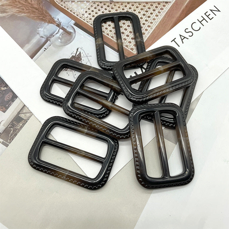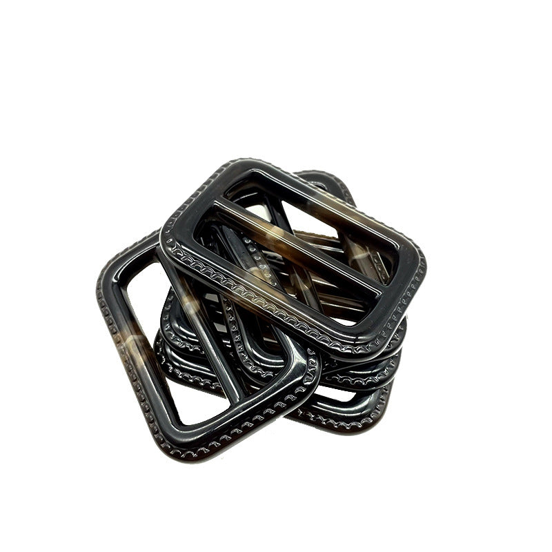 Dessa 40 mm innerdiameter resin D-ring knappar i svart och brunt är en mångsidig accessoar. De är perfekta för att lägga till en stilfull touch till trenchcoats, oavsett om de används på framknäppningen eller som en dekorativ accent. Även lämpliga för väskor och bälten, förbättrar de det övergripande utseendet. Resinmaterialet är hållbart och har en elegant glans. Kombinationen av svart och brunt är klassisk och passar bra med en mängd olika färger och texturer. Dessa knappar tjänar inte bara ett praktiskt syfte utan fungerar också som ett modeuttalande, vilket höjer designen på varje föremål de är fästa vid.