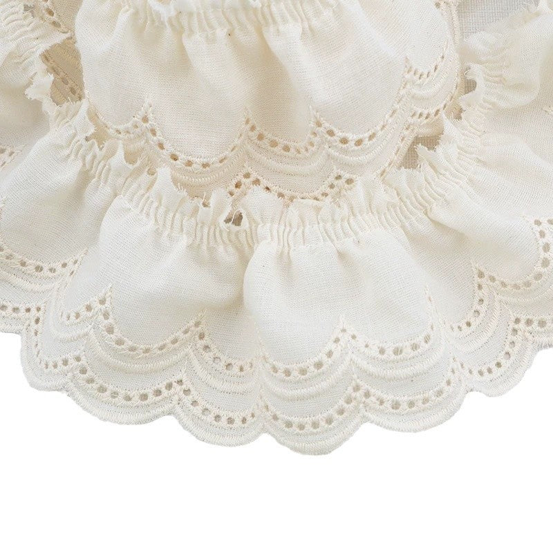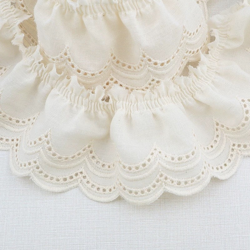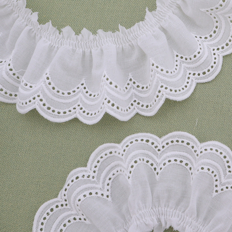 60 mm bomullsbroderad spetskant plisserade dubbla vågor 4 yards
