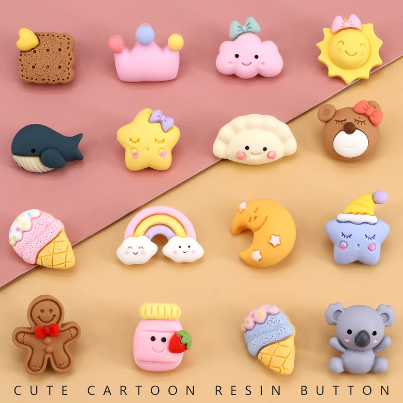 Låt ditt lilla barns garderob bli levande med dessa söta tecknade harts-knappar. De är inte bara funktionella utan också en rolig accessoar för ditt barns kläder.