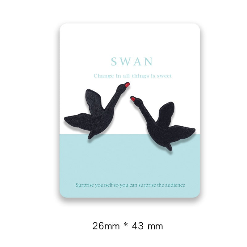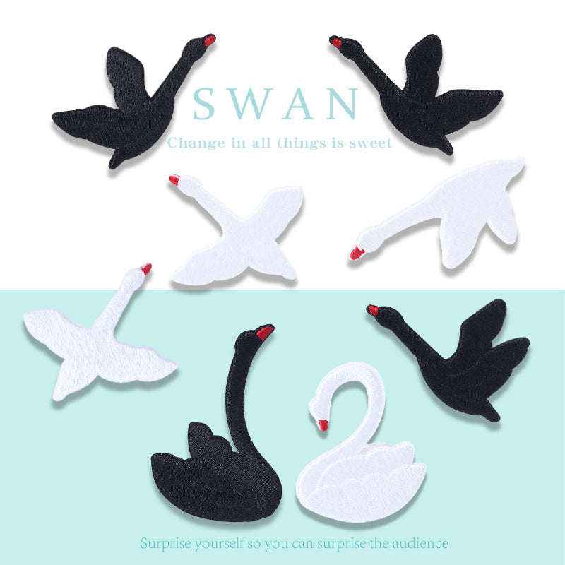 Den svarta svanpatchen, å sin sida, utstrålar mystik och elegans. Dess rika, mörka fjädrar kontrasterar vackert med den vita svanen och skapar ett slående par. Den självhäftande baksidan möjliggör enkel applicering på olika föremål, vare sig det är din favoritjacka, handväska eller till och med en inredningsdetalj. Tillverkad av högkvalitativa material är dessa patchar hållbara och kommer att ge en touch av sofistikering till vad du än pryder dem på.