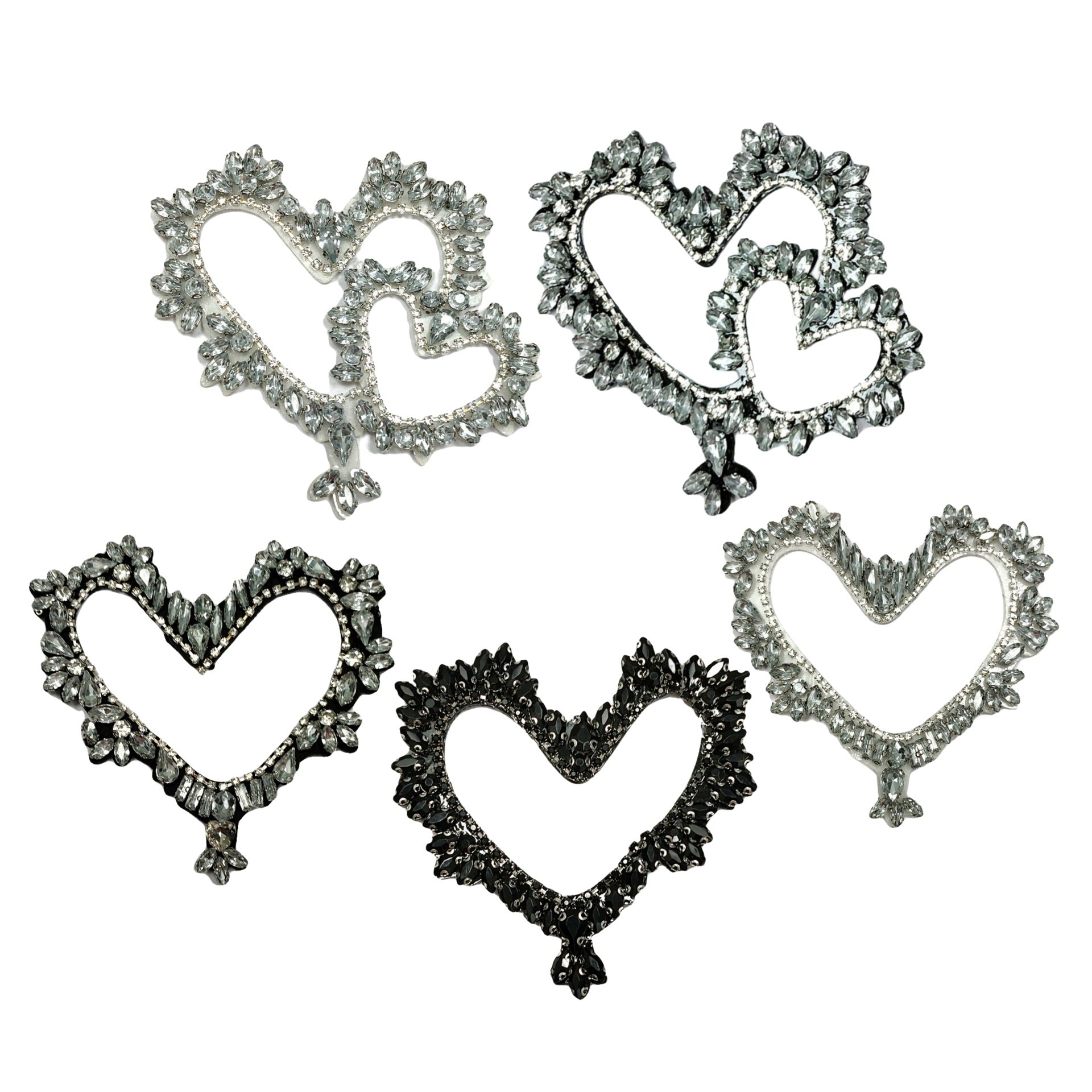 Hollow Heart Diamond Marquise Hand-Beaded Glass Acrylic Applique 5 Pack