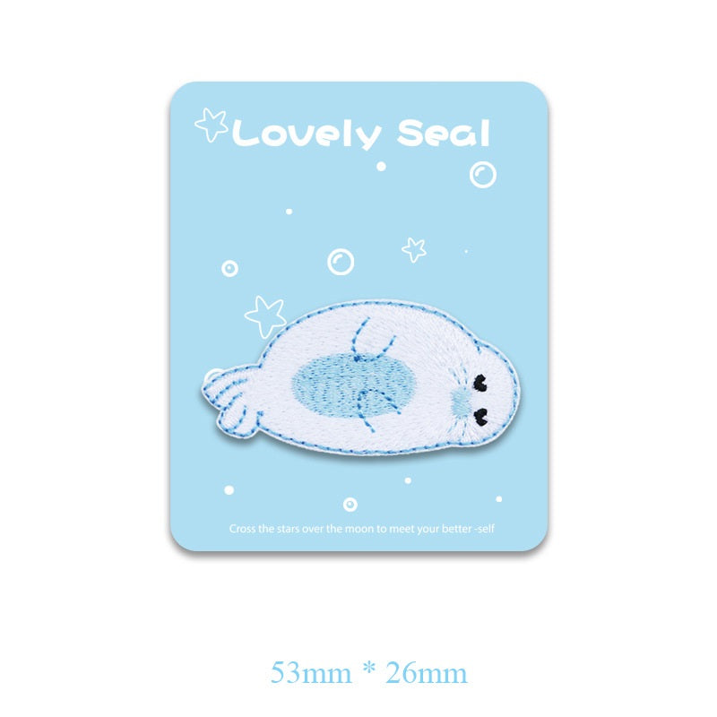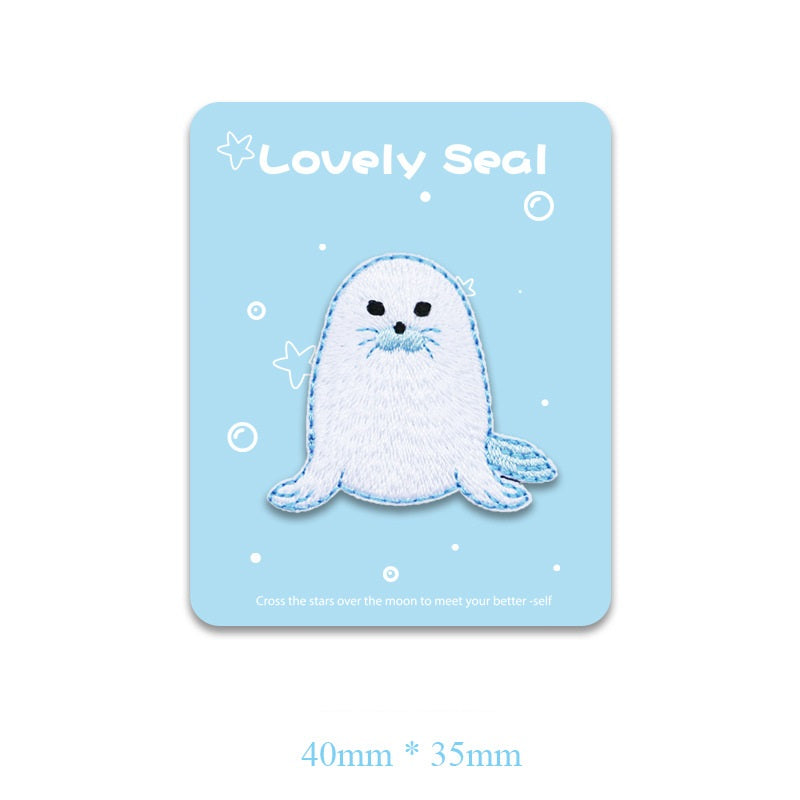 Lägg till en touch av oceanisk charm till din sommargarderob med vår självhäftande sälbroderade patch. Denna patch har en oemotståndligt söt vit säl, med sina stora, själsfulla ögon och vänliga leende som garanterat smälter hjärtan. Broderiet är av högsta kvalitet, med varje detalj av sälens fluffiga päls och fylliga kropp noggrant sydd, vilket skapar en livlik och taktil effekt.