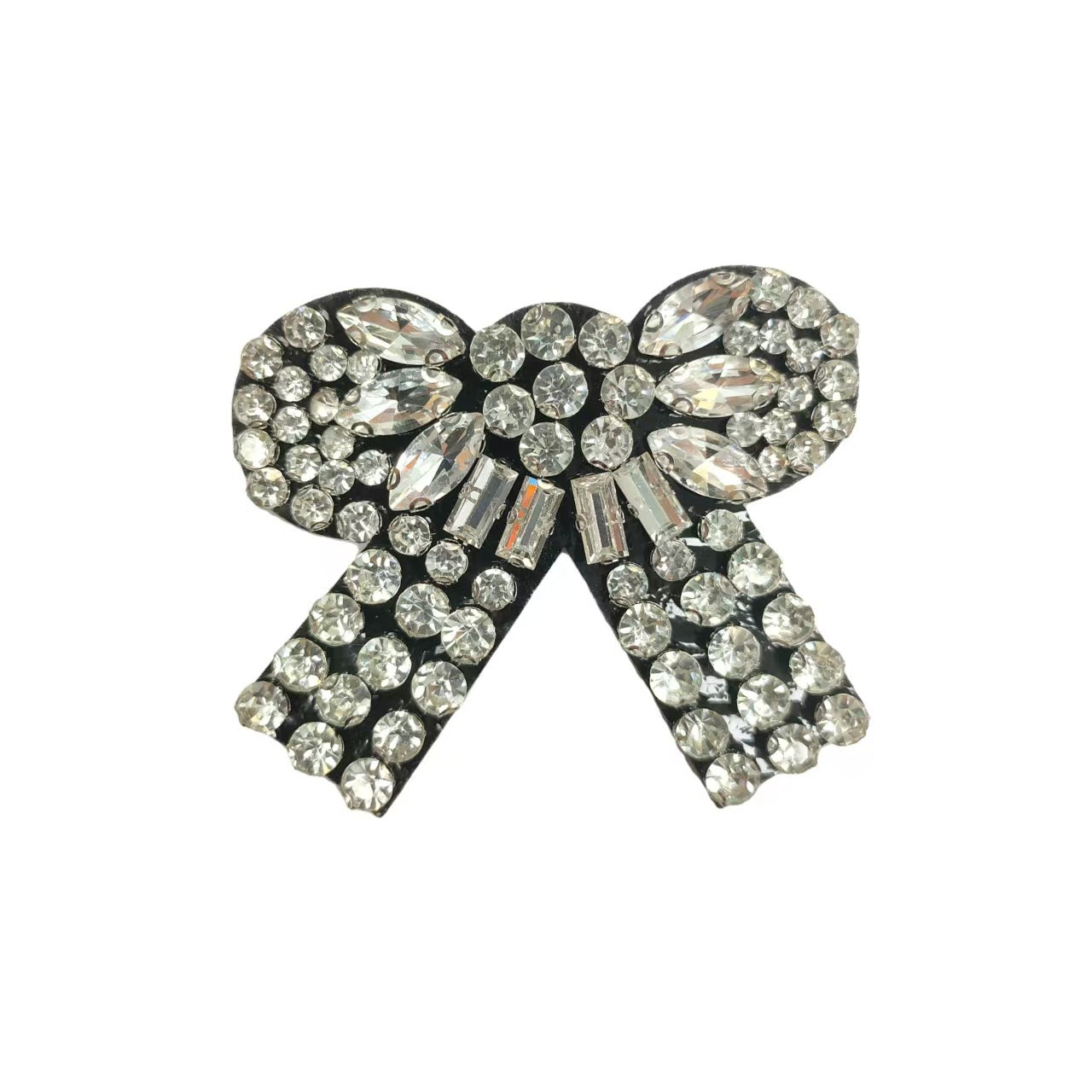 Lägg till en touch av elegans och glans till dina kläder och accessoarer med denna lilla fluga-applikation som har handsydda pärlor och rhinestones! Perfekt för att dekorera remmar, klänningar, väskor eller DIY-projekt, ger denna applikation en lyxig och feminin touch till varje design.